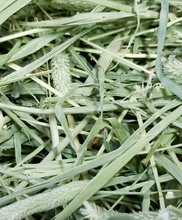 Orchard is a grass hay that is very popular and abundantly available. This type of hay grows well in an area where snow covers the ground during the winter and gets mildly hot in the summer. High heat can cause damage to the plants and kill the grass. Orchard is a mild protein that is often at the ideal level for most pastured and stabled horses with average or low activity levels. The grass is highly digestible and soft, making less work for the horses teeth and digestive system to break down the feed. This feed is often used in high end horses tables and by top performance horses for its protein levels and balanced nutritional content.